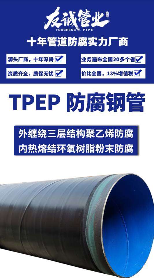 TPEP防腐鋼管母材包括螺旋管,直縫管,無(wú)縫管等,在我國(guó)廣泛應(yīng)用于石油、化工、天然氣、熱力、污水處理、水源、橋梁、鋼結(jié)構(gòu),海洋輸水打樁等管道工程領(lǐng)域。管道(鋼管)在不同的工作環(huán)境中使用,為減緩或防止管道在外介質(zhì)的化學(xué)、電化學(xué)作用下或由微生物的代謝活動(dòng)而被侵蝕和變質(zhì)在其外壁上涂2層或3層聚乙烯(3PE)以達(dá)到管道防腐,3pe防腐管使用壽命延長(zhǎng)3-5倍。3PE防腐鋼管是指3層結(jié)構(gòu)聚烯烴涂層(MAPEC)外防腐鋼管,是國(guó)內(nèi)常用的一種防腐管道。其它還有IPN8710、FBE環(huán)氧粉末、環(huán)氧煤瀝青等防腐方式。一般指的是鋼管外壁防腐。實(shí)際操作中將三種材料混合融為一體,經(jīng)過(guò)加工使之與鋼管牢固結(jié)合形成優(yōu)良的防腐層。其加工方式一般分纏繞式和圓模包覆式兩種。