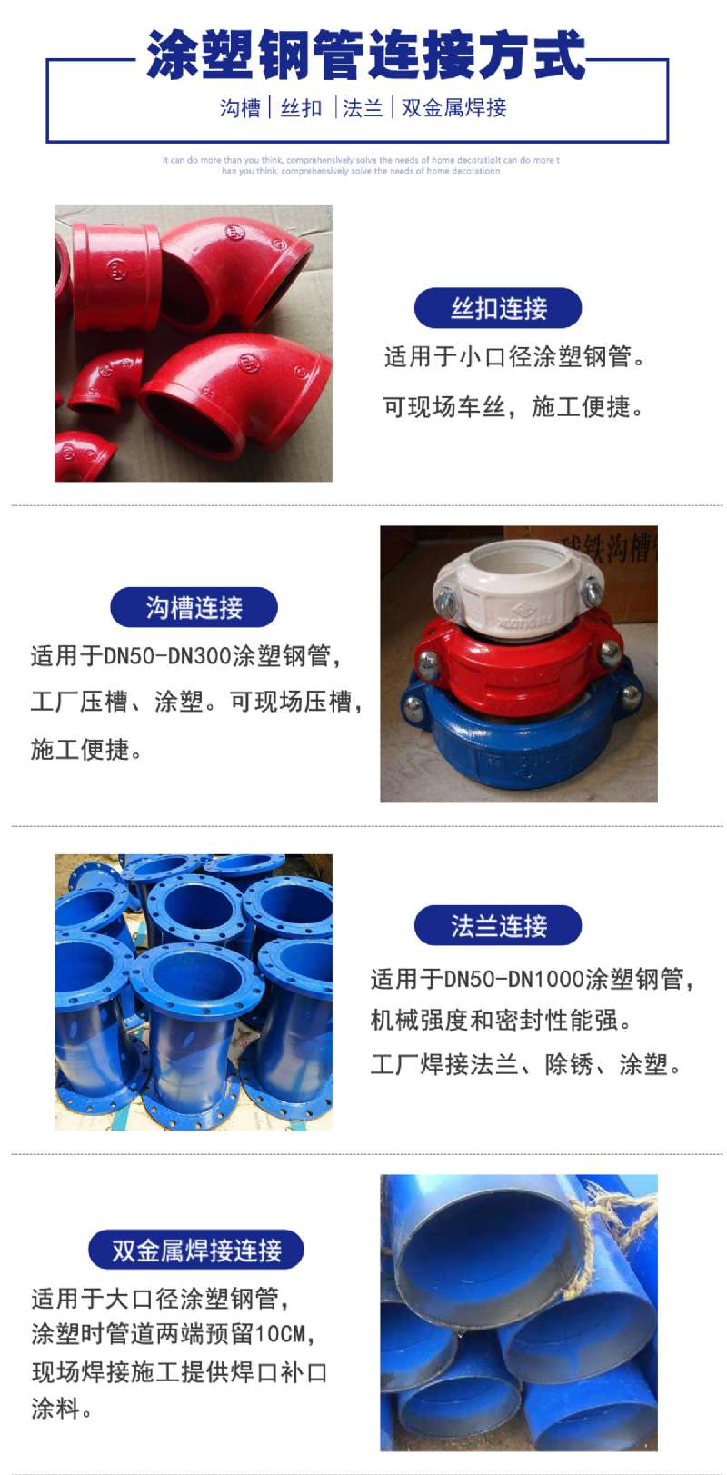 涂塑螺旋鋼管適用于-30℃—120℃的工作環(huán)境,與其他金屬管、塑料管、復(fù)合管相比,它綜合 了各種管道的特點,既有鋼管的強度,又有塑料管的耐腐蝕、耐磨損,流體阻力小等特點,是一種安全衛(wèi)生強度高,粘結(jié)強度好的綠色管道。飛塑牌涂塑鋼管廣泛用于高層建筑給排水,消防噴淋,暖通、電纜內(nèi)外防腐、天然氣、冷熱循環(huán)水管道的耐熱防腐、海水循環(huán)系統(tǒng)、工業(yè)系統(tǒng)、循環(huán)水系統(tǒng)、去離子純凈水系統(tǒng)、耐磨防腐系統(tǒng)、防結(jié)垢抗菌防腐系統(tǒng)、內(nèi)外防腐系統(tǒng)、電纜護套、消防噴淋系統(tǒng),保溫防腐系統(tǒng),化工重防腐系統(tǒng)等。